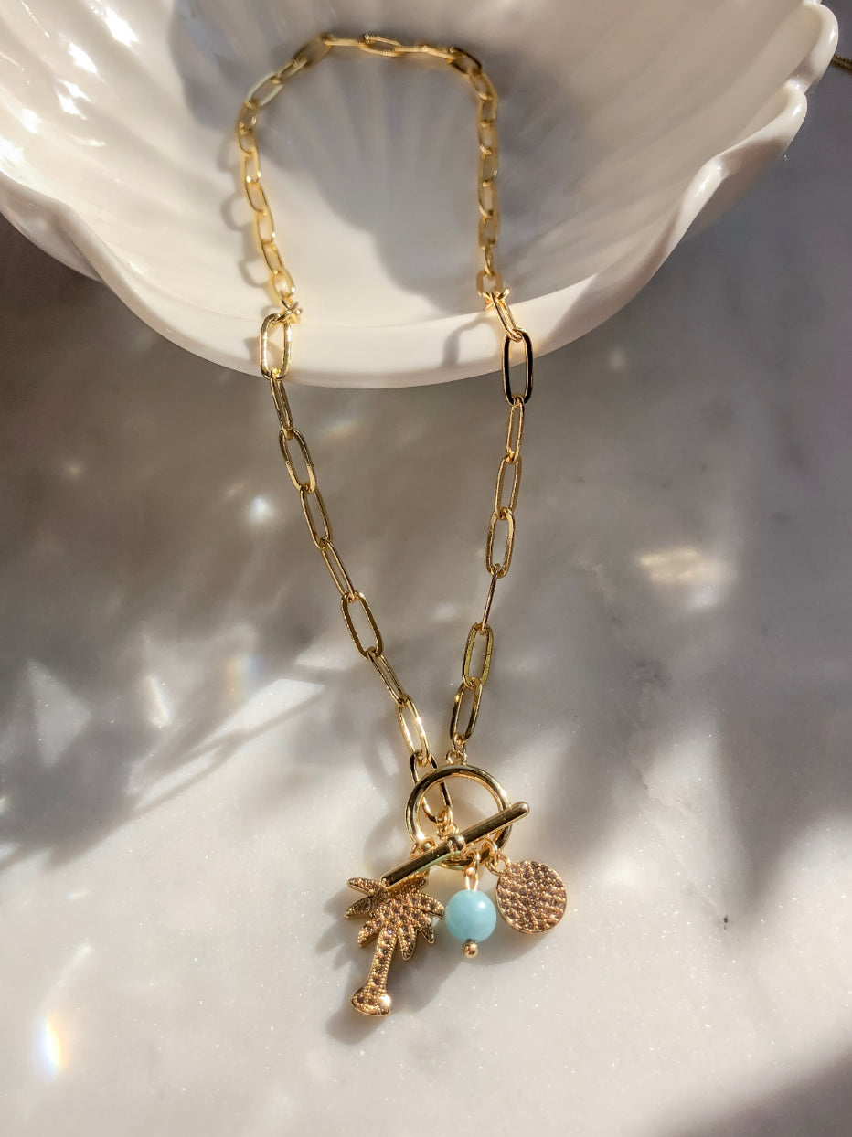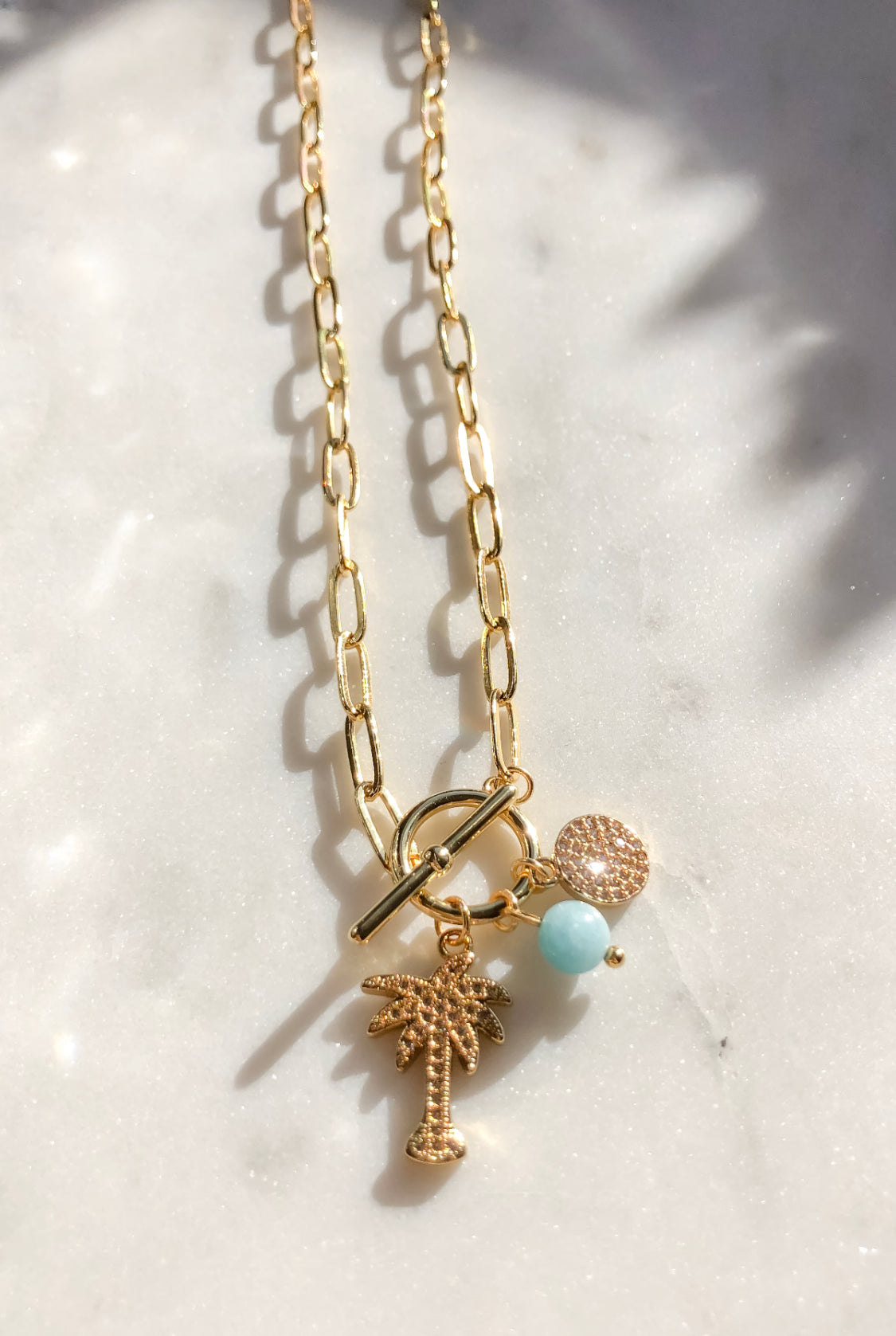 • included with three pendants: palm tree, coin drop, Amazonite round crystal