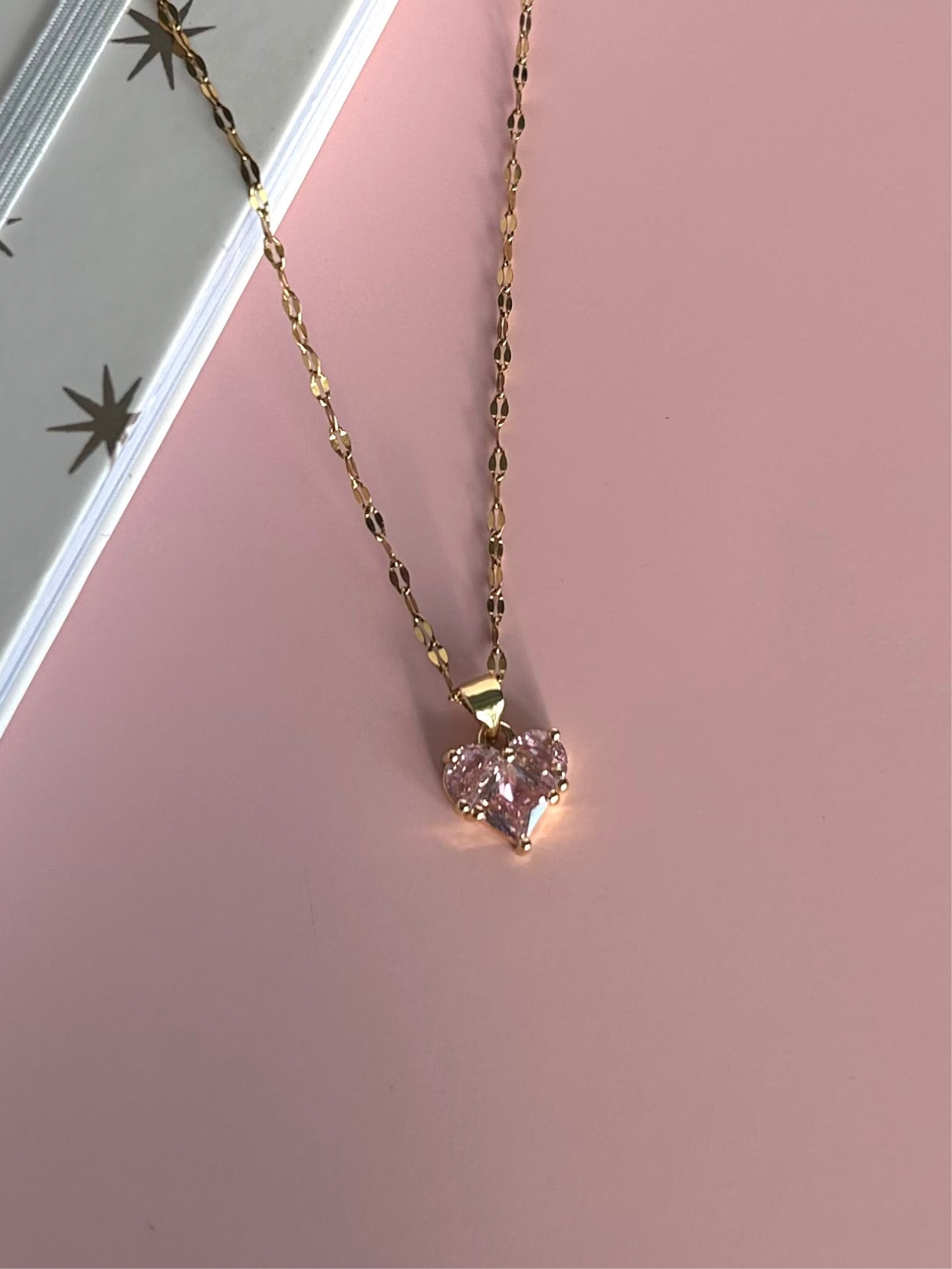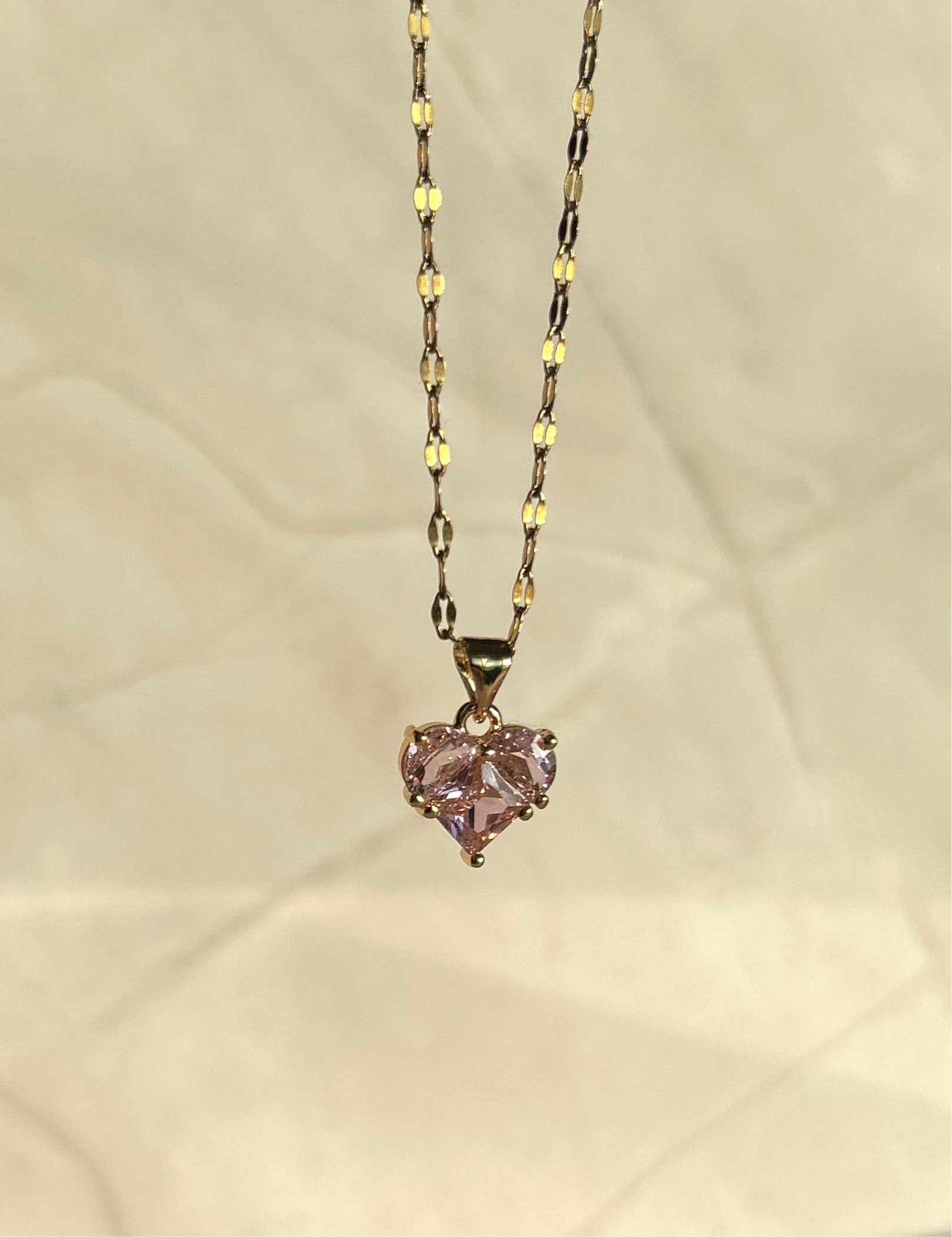 This stunning dainty piece comes in pink and clear. Add this necklace to your stack for that extra bit of sparkle!