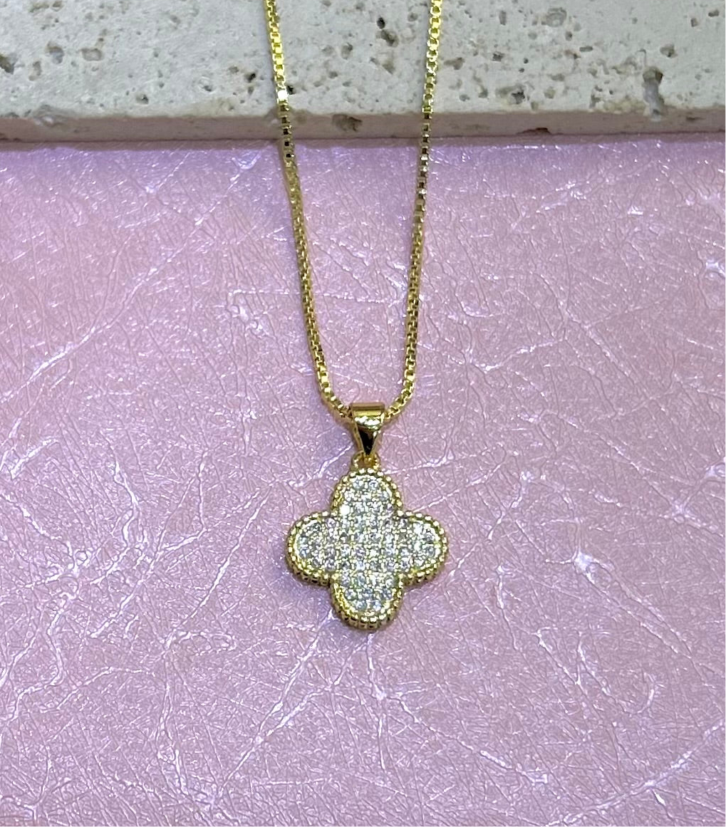 This necklace is a simple statement piece that you can wear with anything. It is made with zirconia crystals and placed on an 18k gold plated over sterling silver box chain. Lengths are customizable.