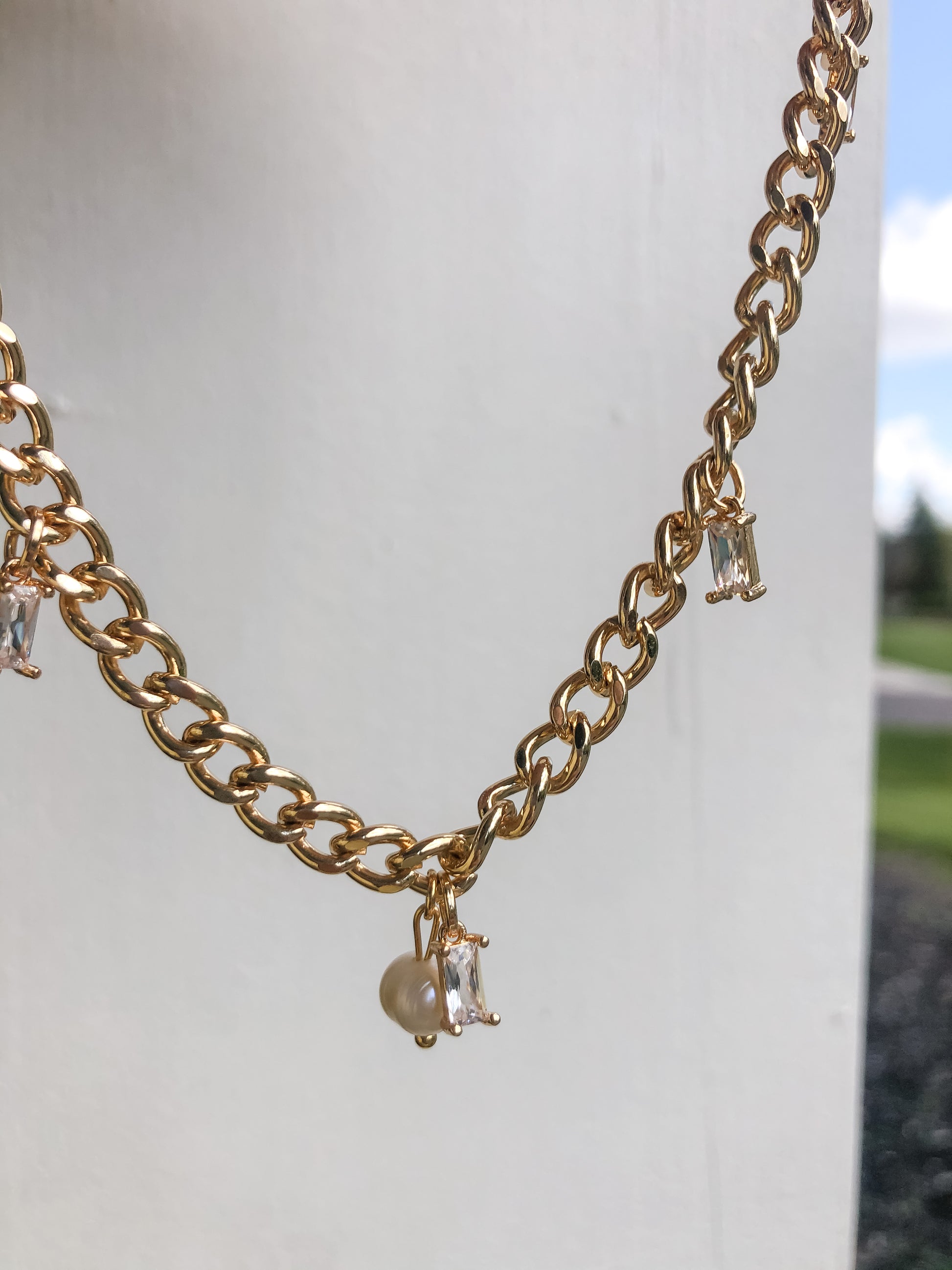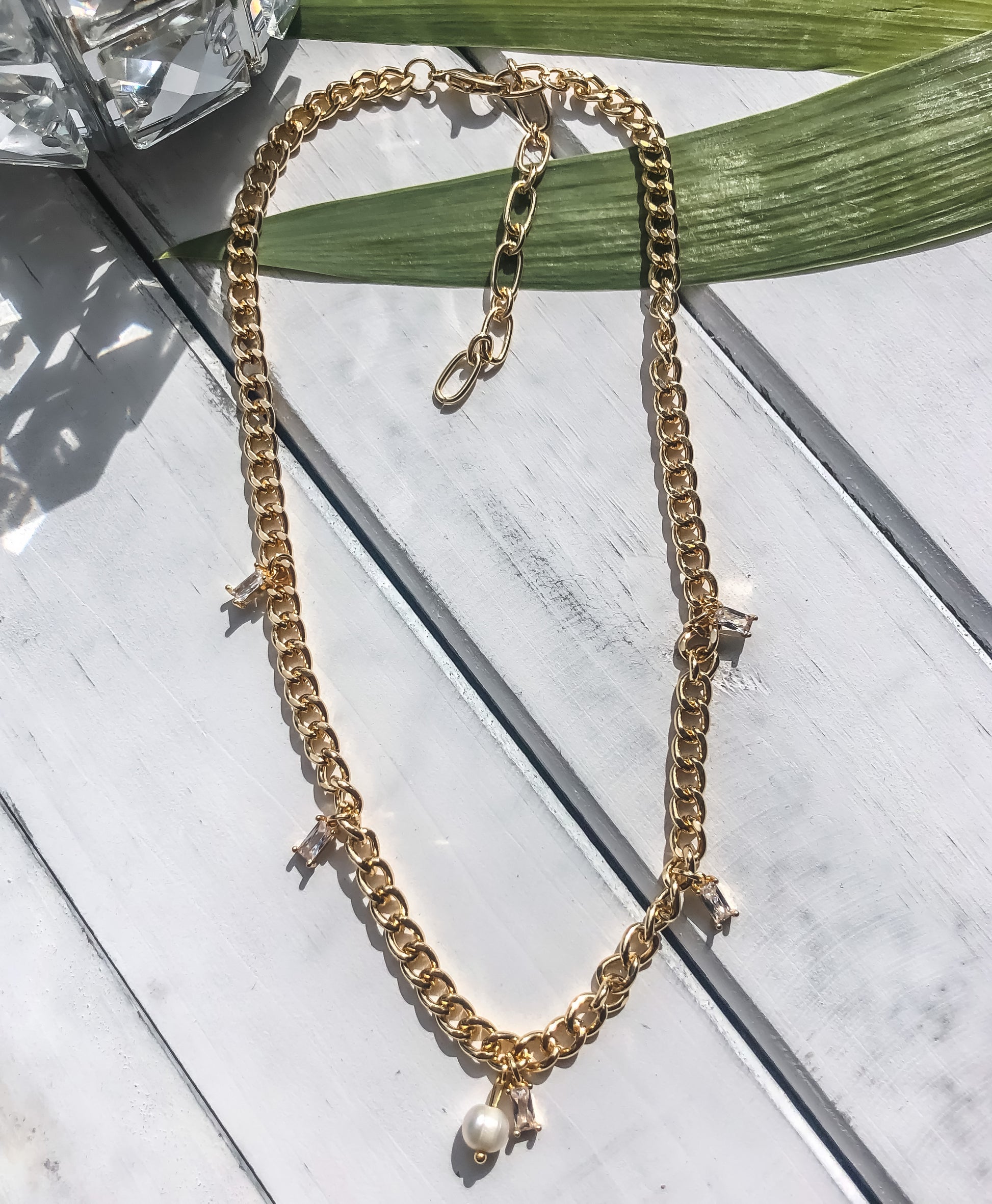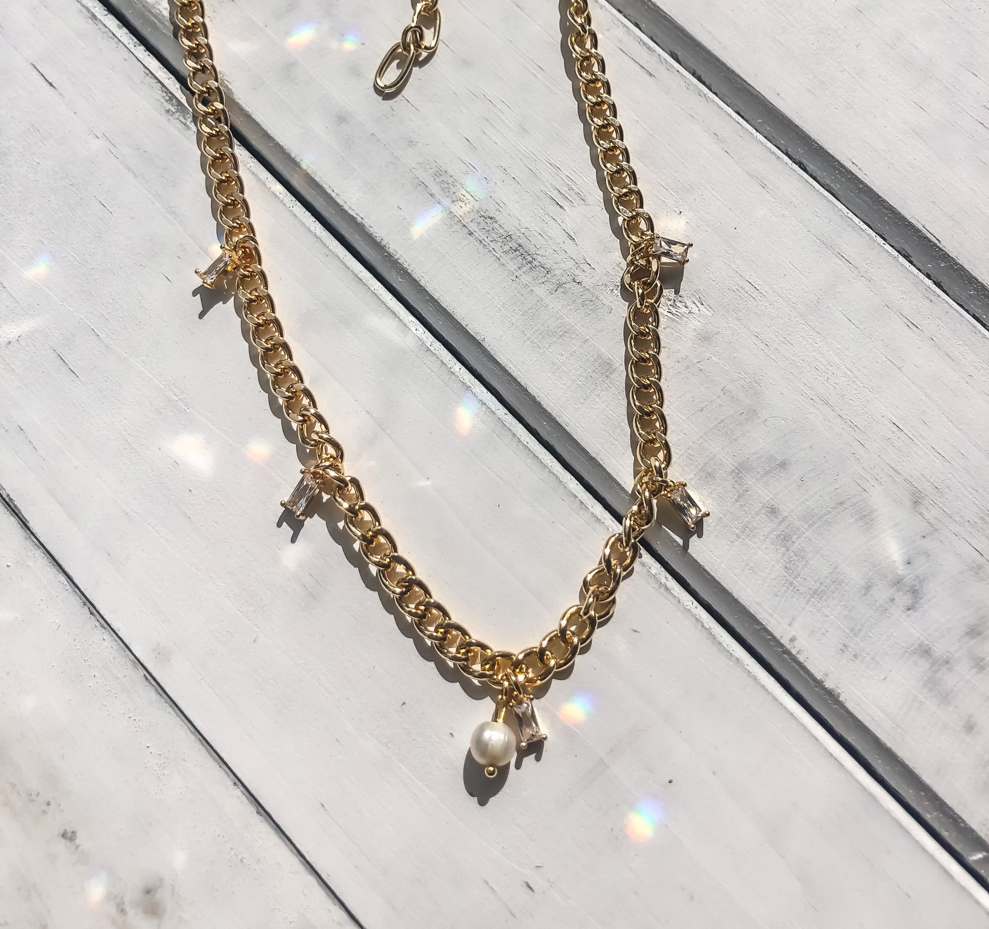 - Made with a freshwater pearl and an 18k gold plated curb chain