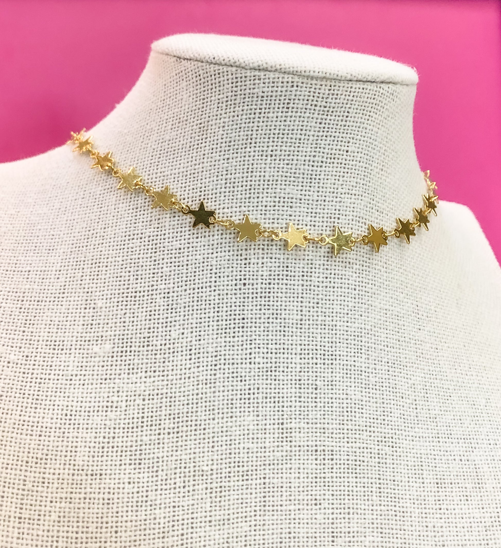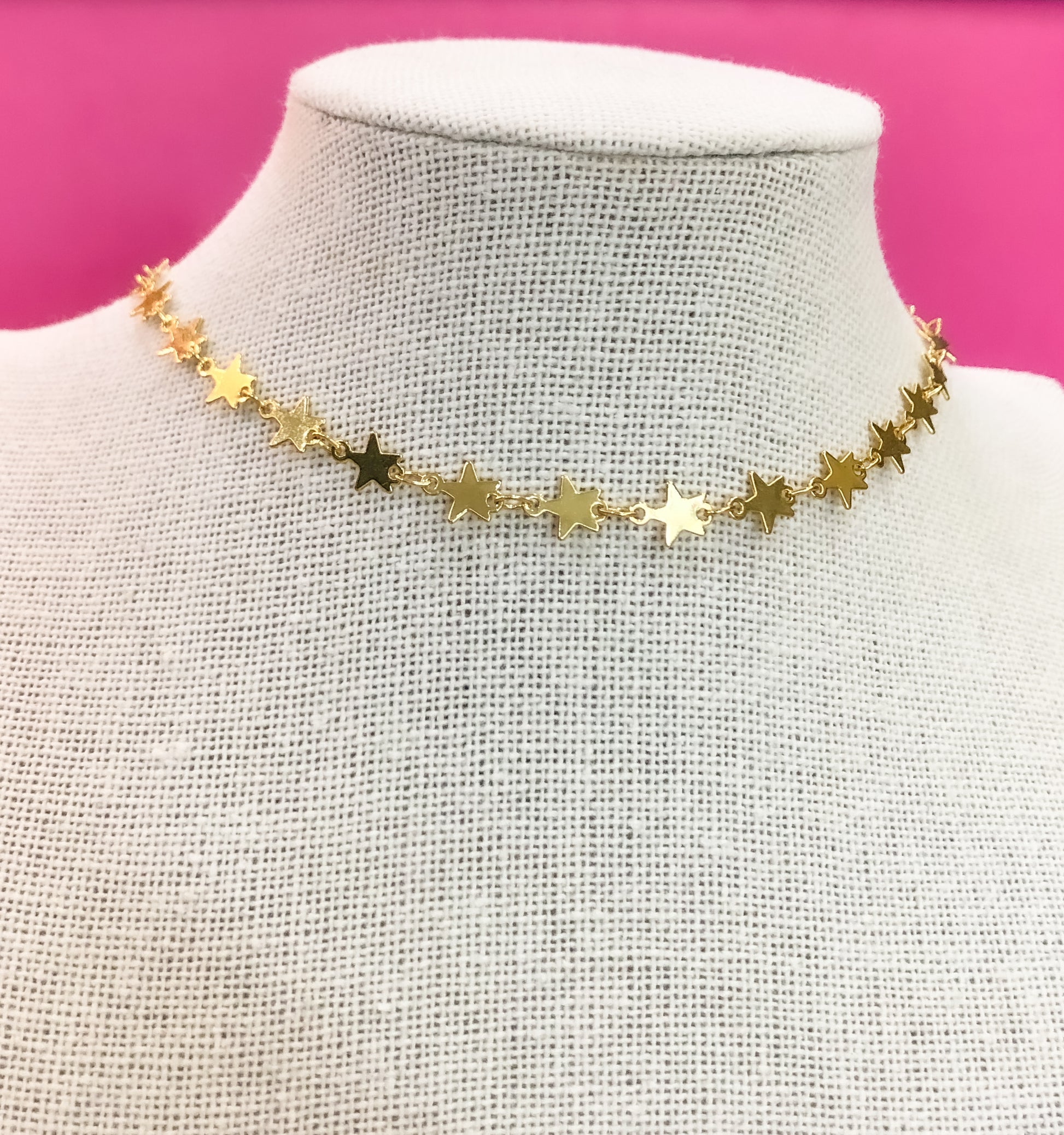 Made with 18k gold plating over stainless steel. This choker is 15” and adjustable to wear as a 17” necklace.