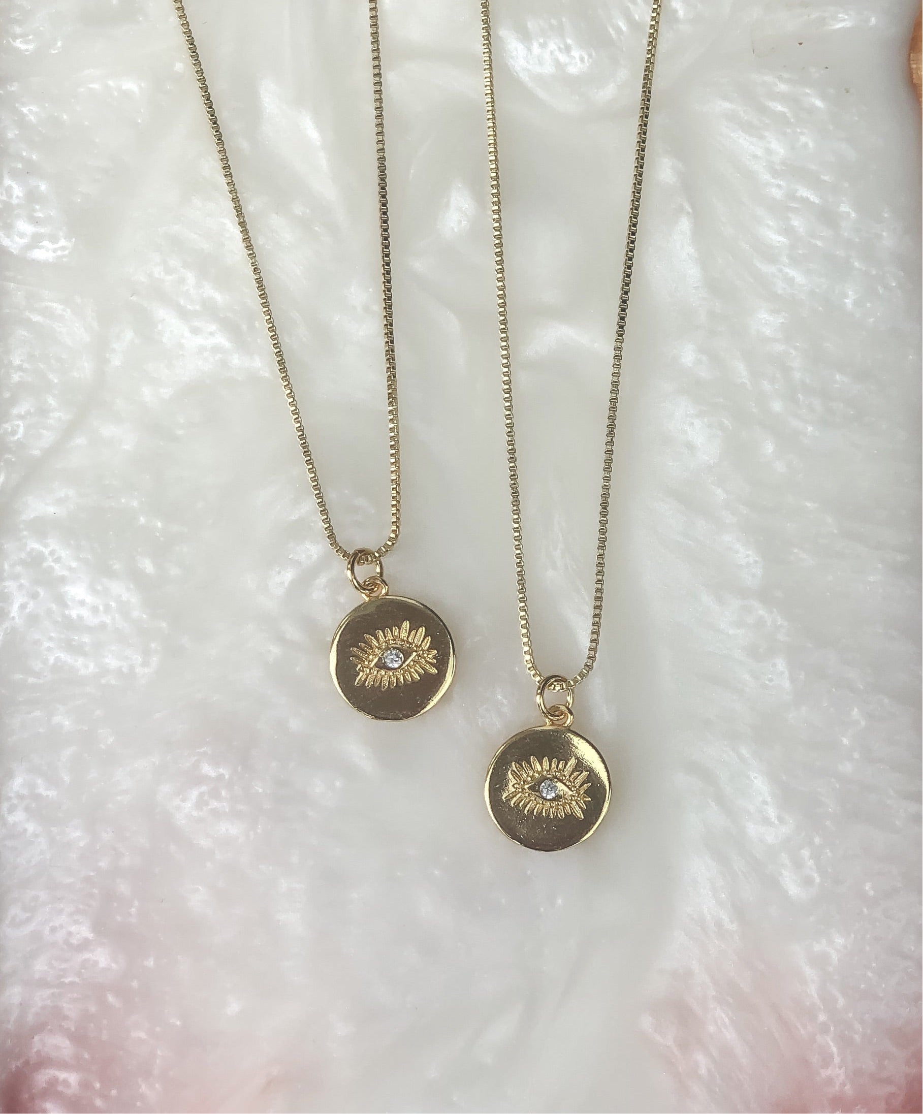 A symbol of security, protection, and power, our Golden Evil Eye necklace is made with a fine 18k gold plated over 925 sterling silver box chain.