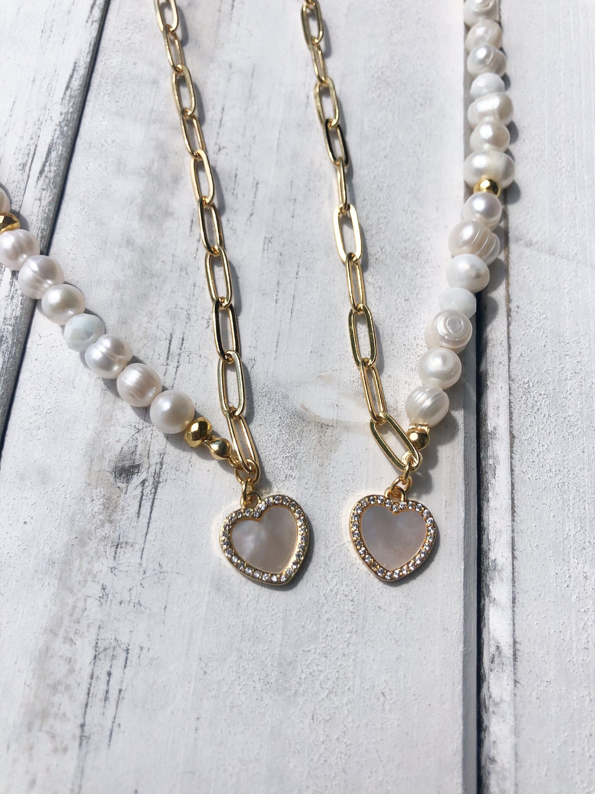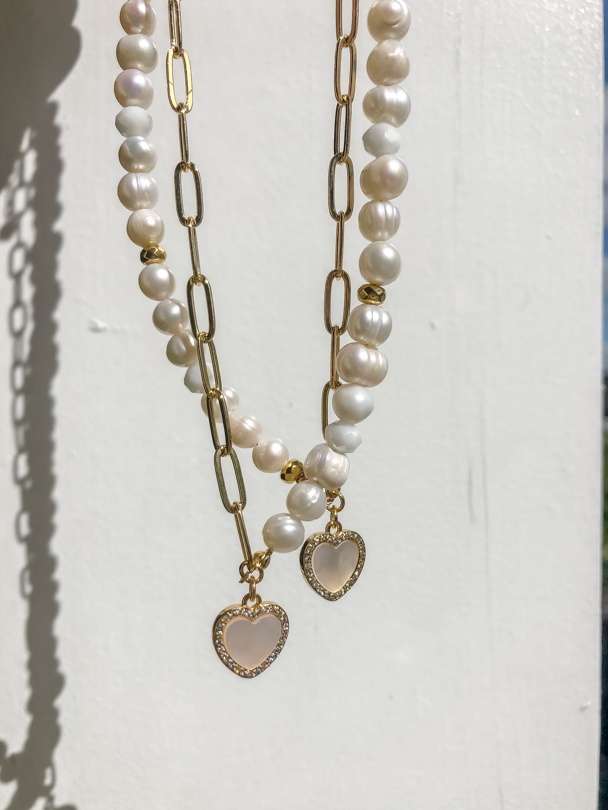 - Made with freshwater pearls and a Mother of Pearl heart pendant