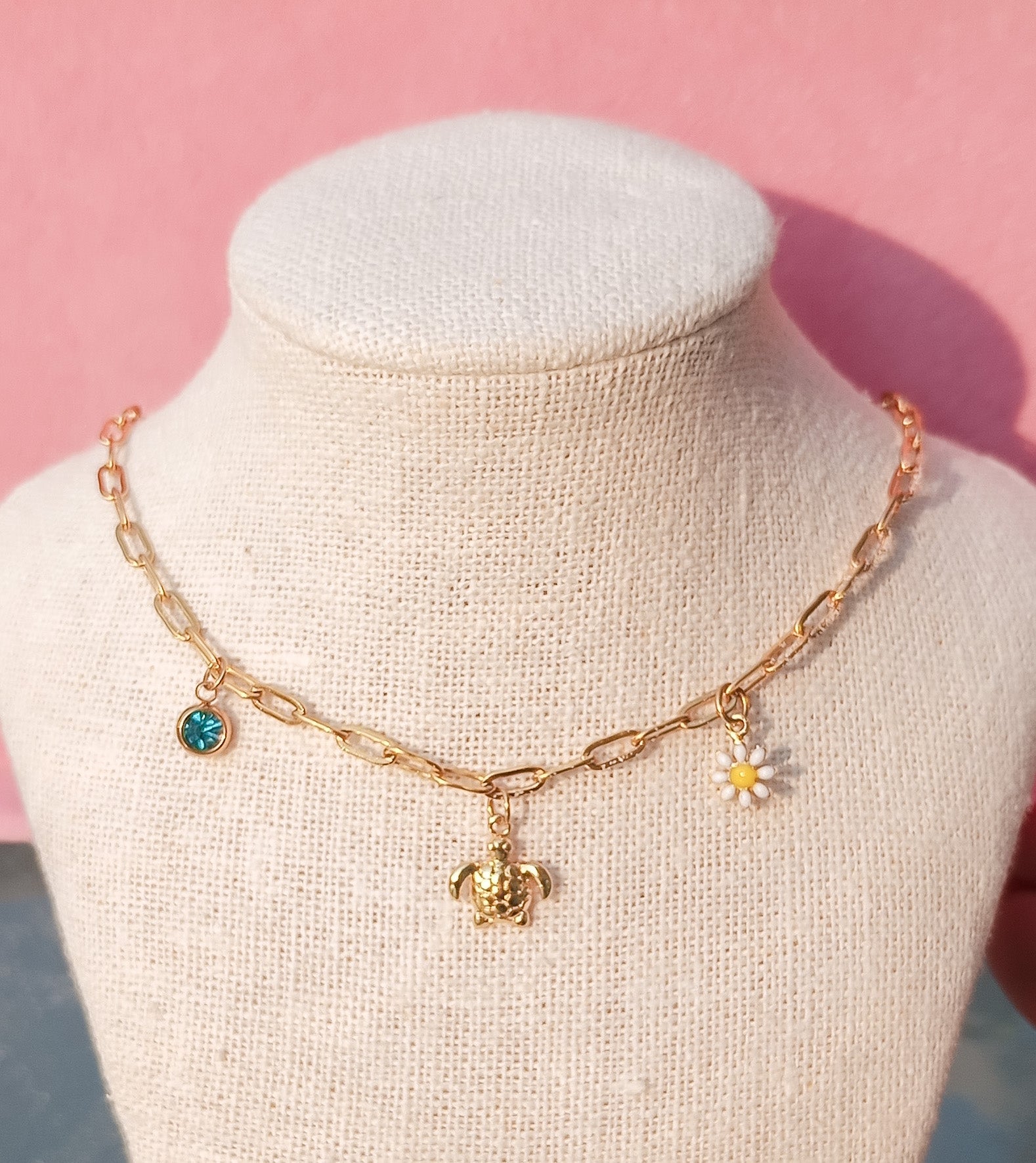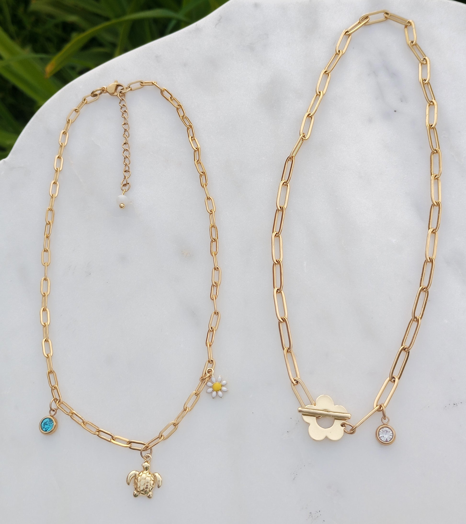 Made with a hypoallergenic small paperclip chain that is 14.5” and adjustable to wear longer.