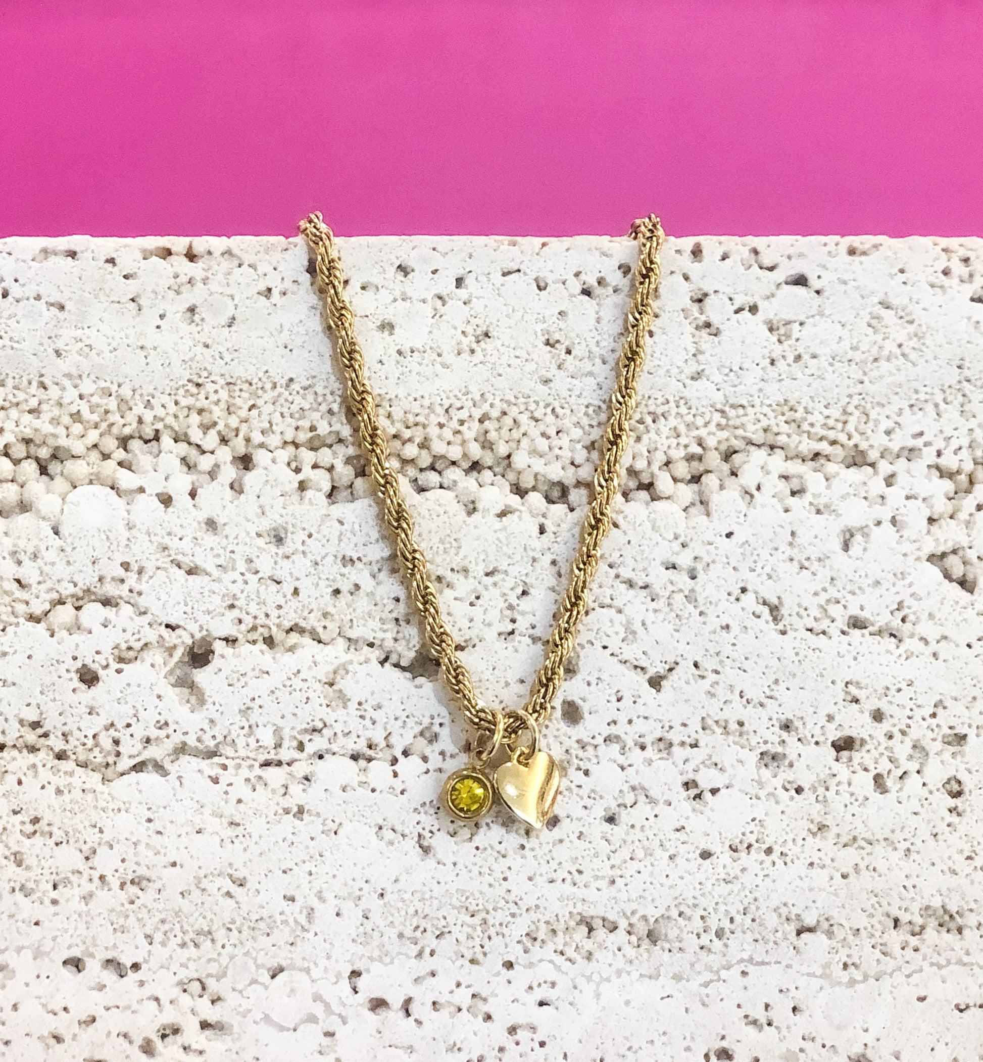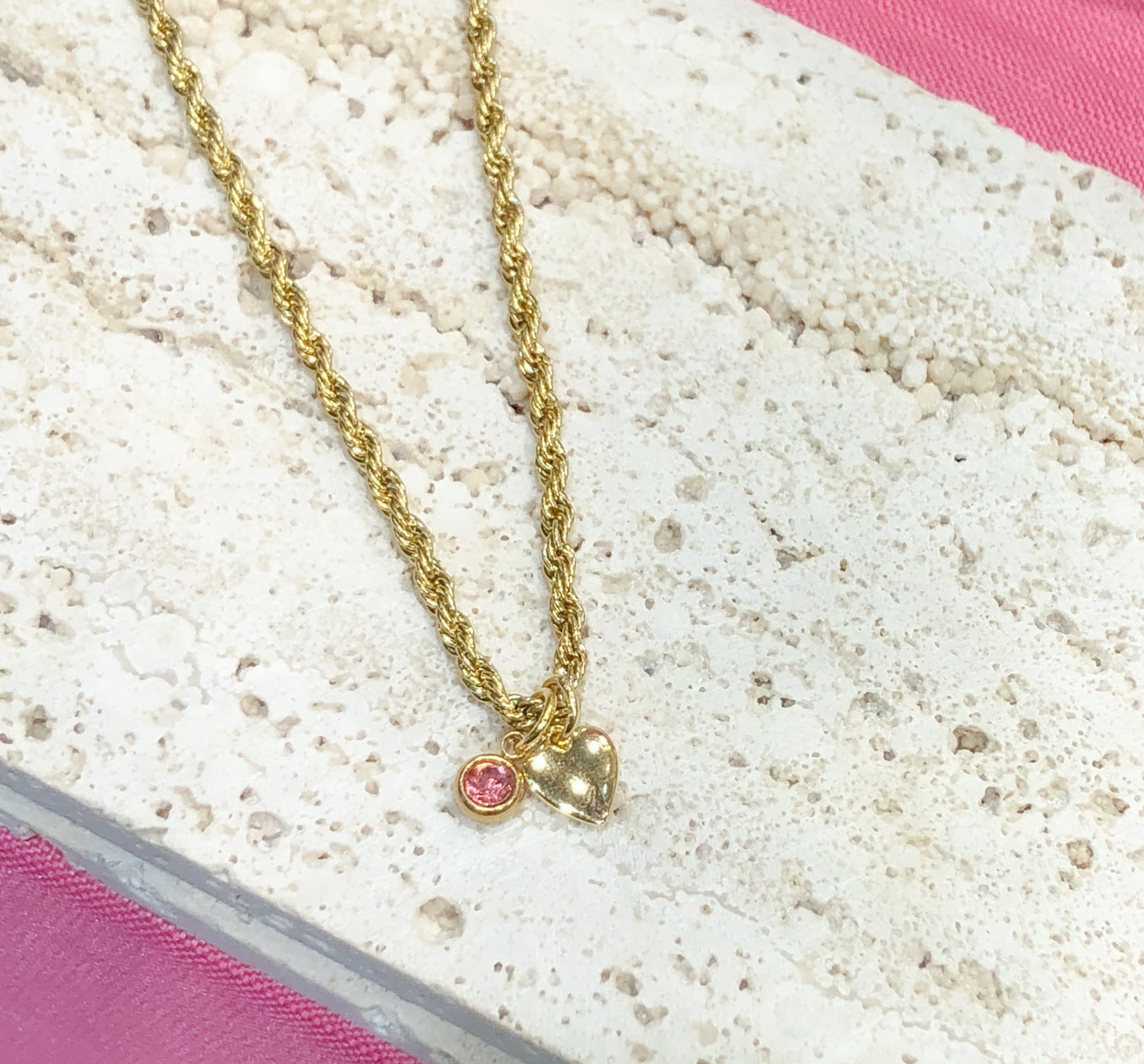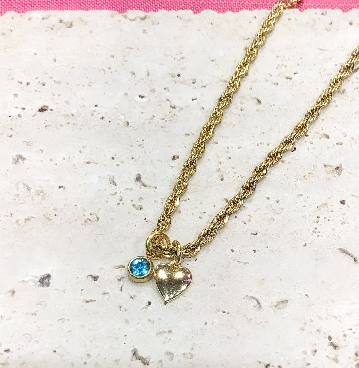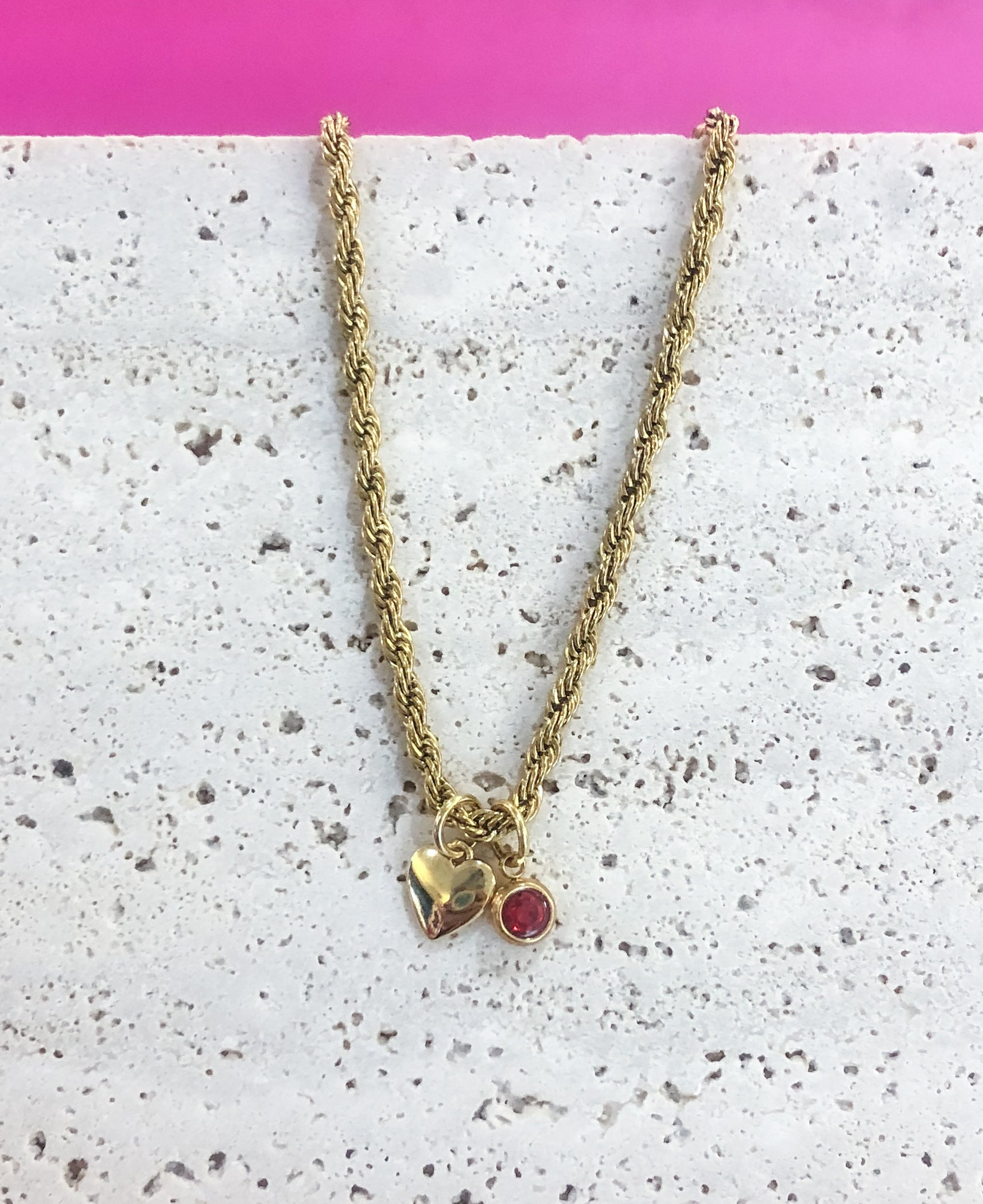 A personalized gift idea for any occasion. Made with a 3mm 18k gold plated over hypoallergenic stainless steel diamond cut rope chain.