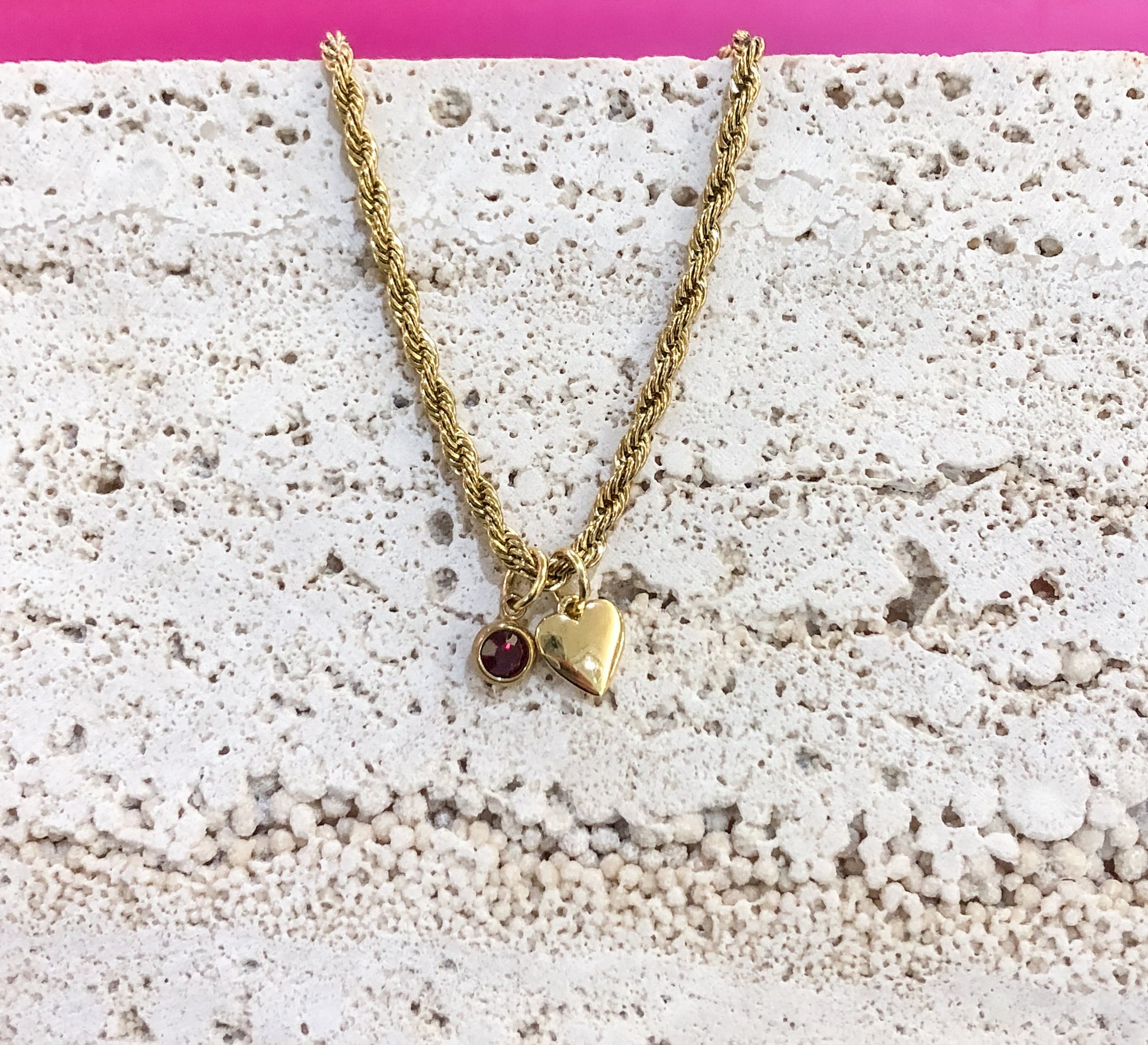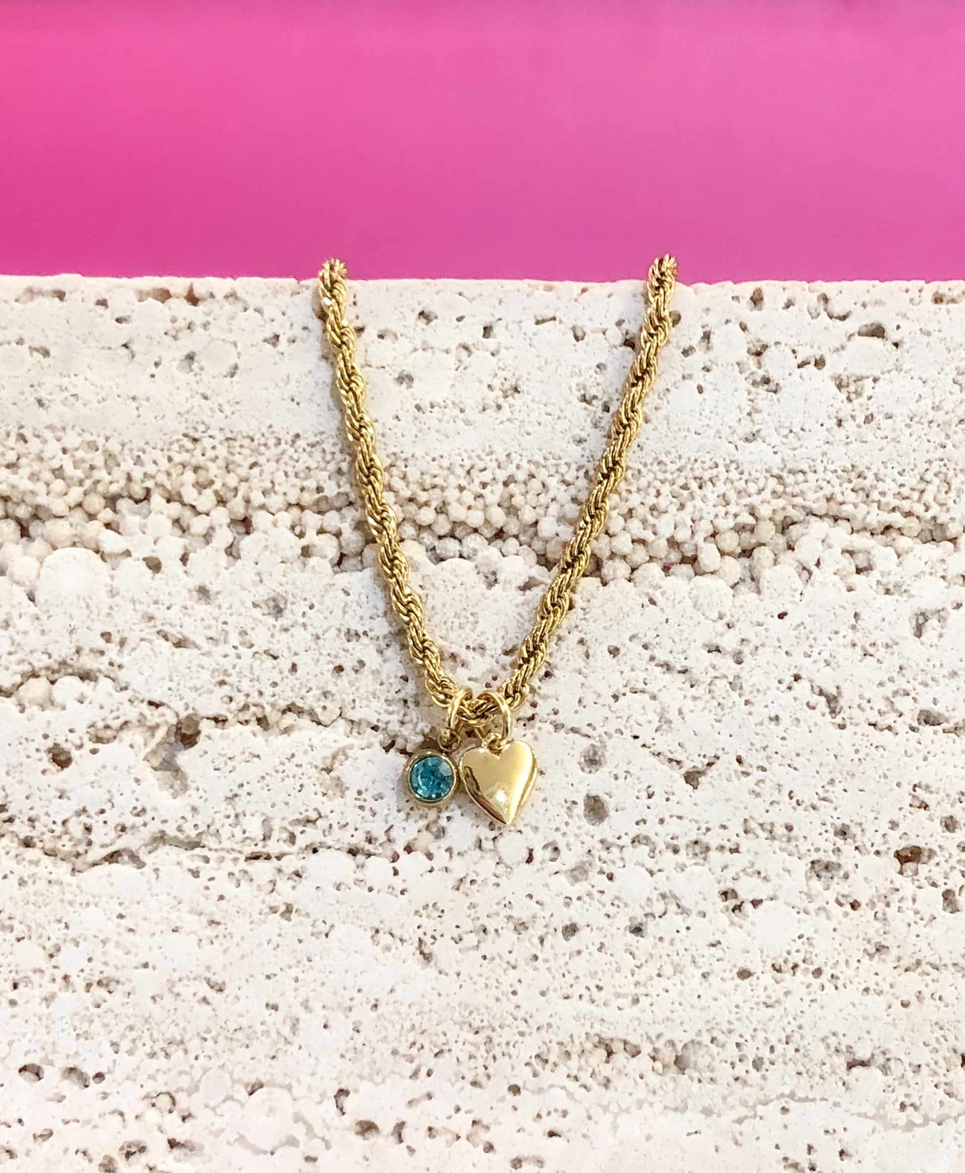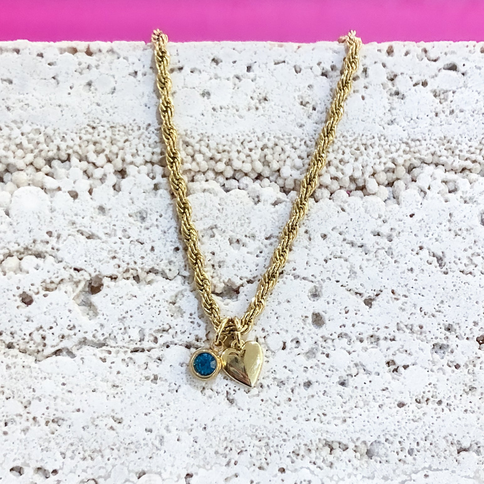A personalized gift idea for any occasion. Made with a 3mm 18k gold plated over hypoallergenic stainless steel diamond cut rope chain.