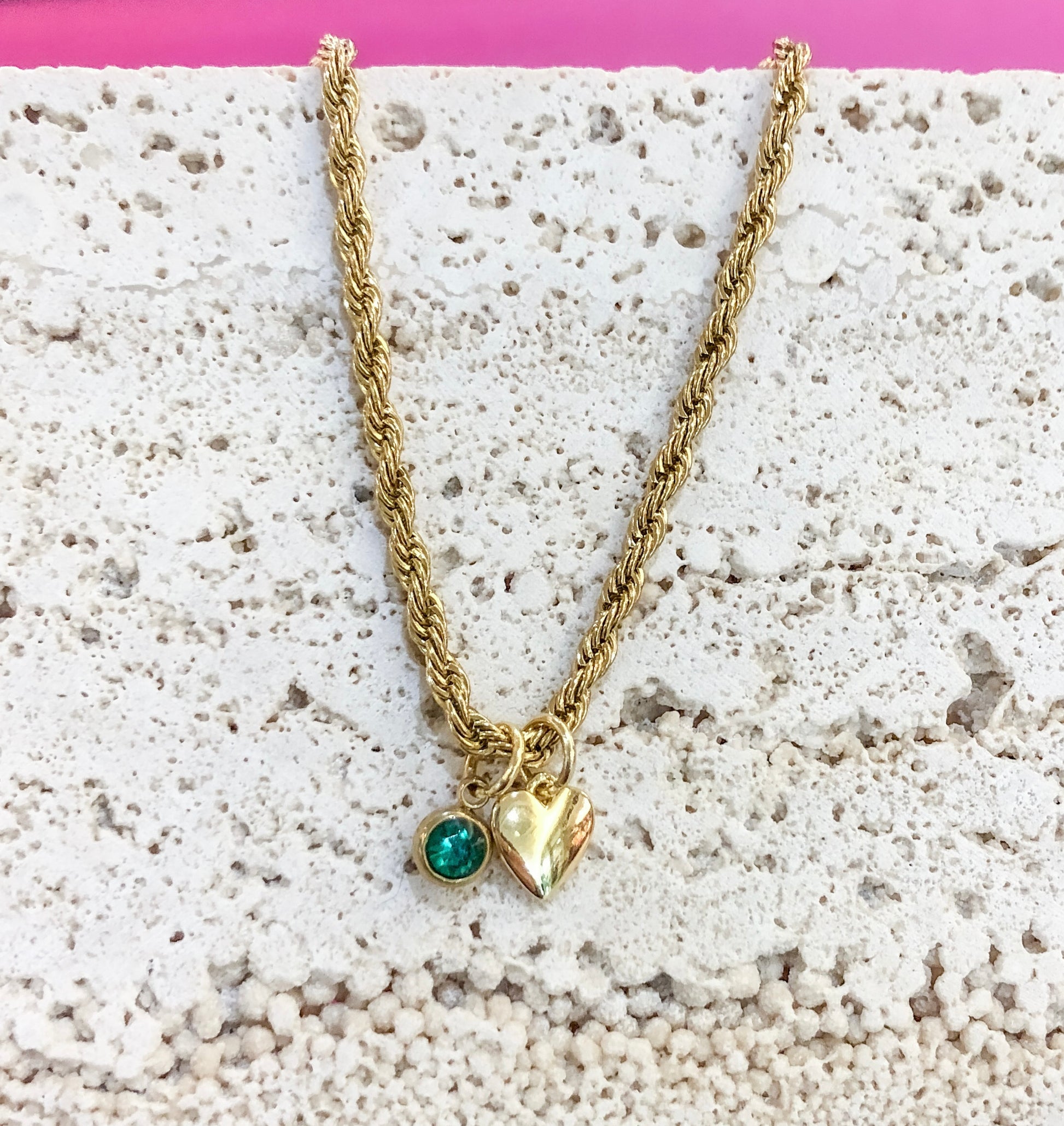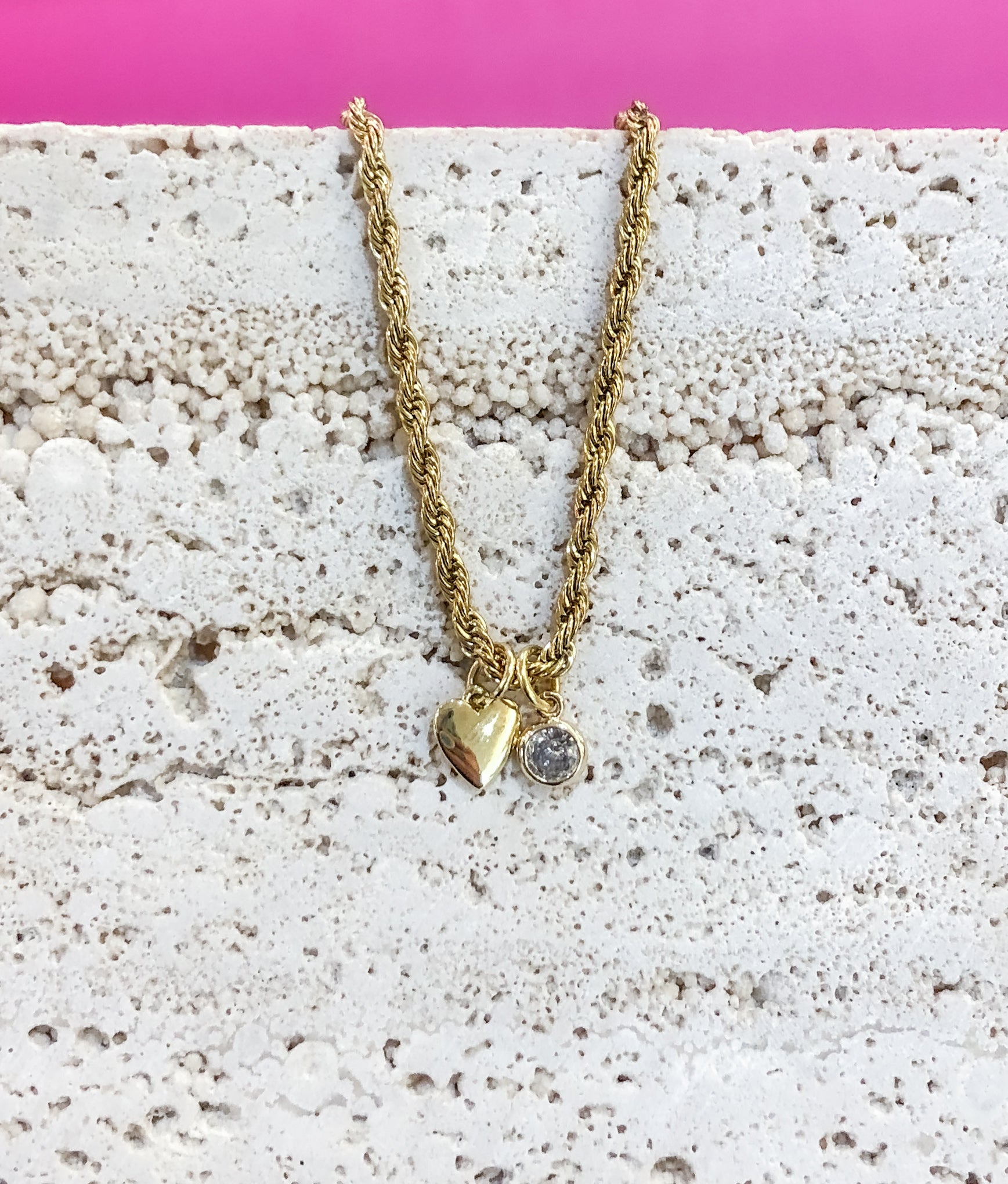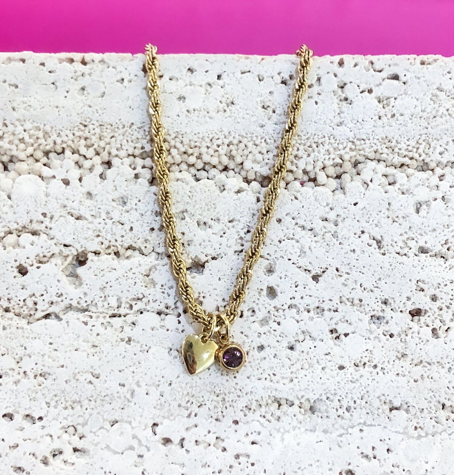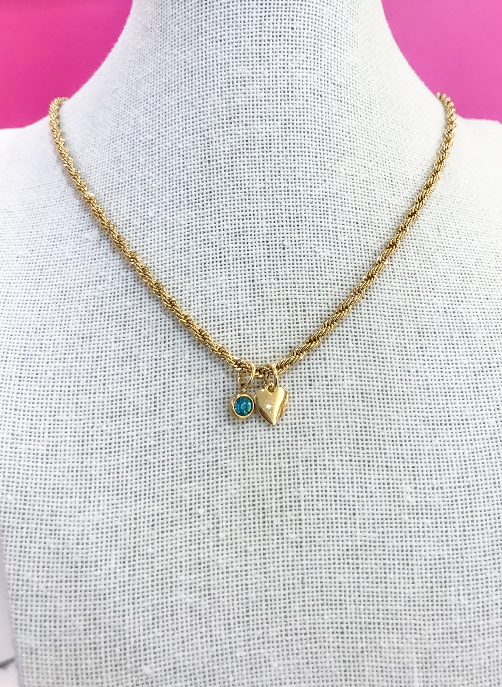 A personalized gift idea for any occasion. Made with a 3mm 18k gold plated over hypoallergenic stainless steel diamond cut rope chain.