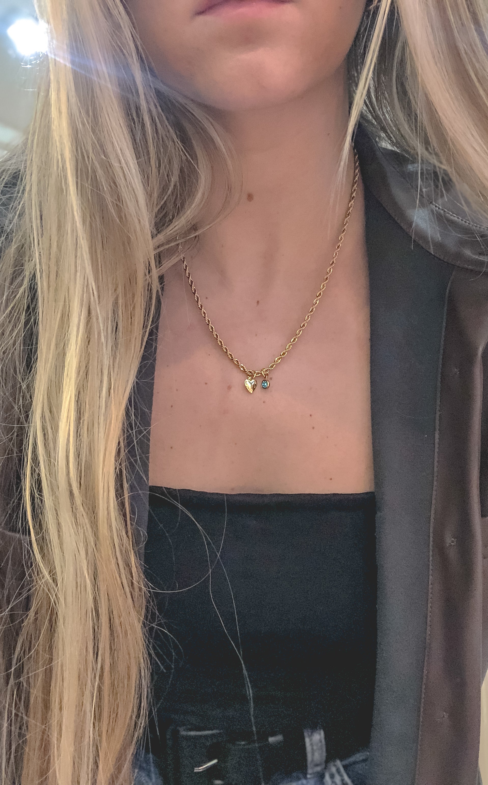 Safe for sensitive skin and non-tarnish for everyday wear. This necklace is 19” in length.